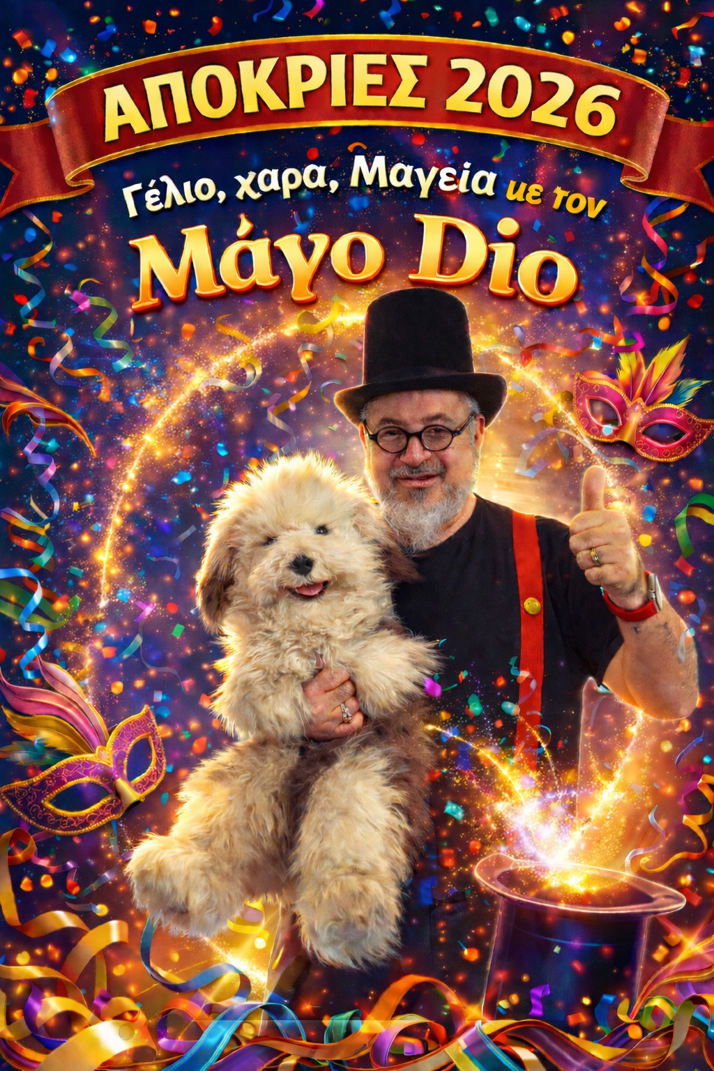 Η γιορτή των Αποκριών συνδυάζει το γέλιο, τη χαρά και την αίσθηση της μαγείας, προσφέροντας σε μικρούς και μεγάλους μοναδικές εμπειρίες μέσα από διάφορες δραστηριότητες και εκδηλώσεις. ο Μάγος Dio και οι συνεργάτες του θα κάνουν την εκδήλωσή σας ΑΞΕΧΑΣΤΗ