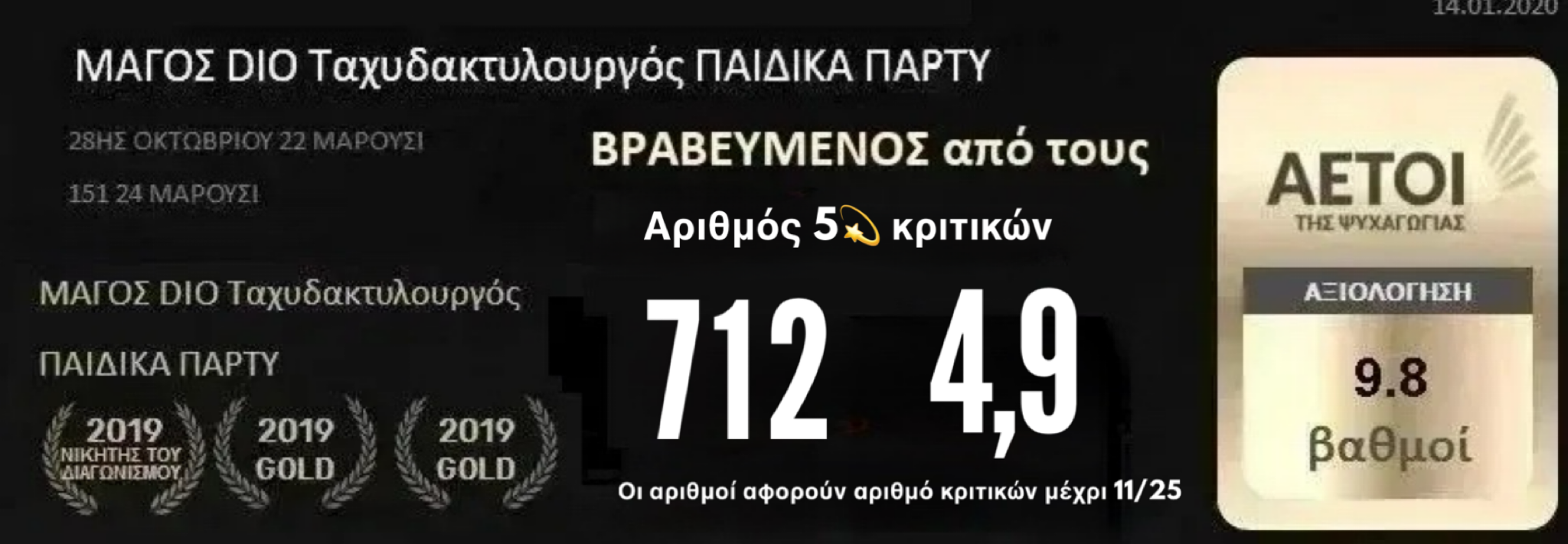 ο Μάγος Dio είναι βραβευμένος ως ο μάγος με τις περισσότερες θετικές κριτικές στην Google για τις ψυχαγωγικές του υπηρεσίες